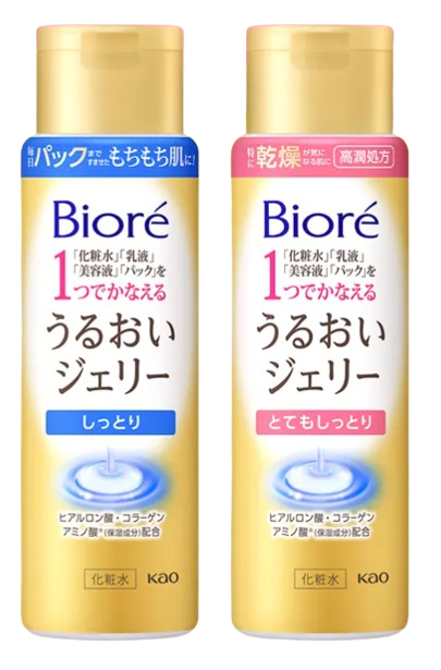 「ビオレ うるおいジェリー」は、花王が独自の保湿技術を用いて開発したオールインワンジェルです。ヒアルロン酸・コラーゲン・アミノ酸(アルギニン)などの保湿成分を配合し、肌にうるおいを与えます。